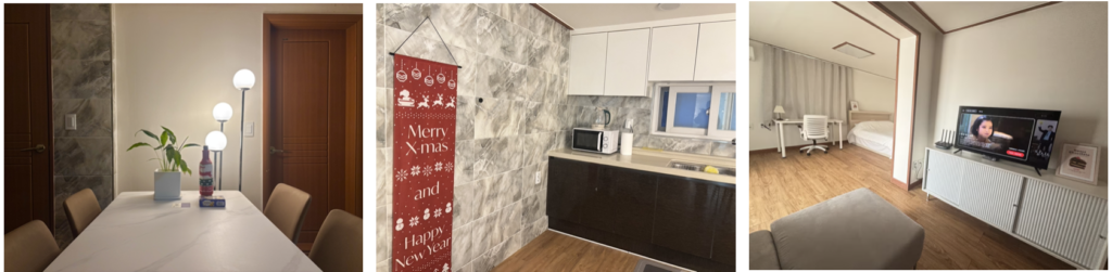 은은한 조명과 나무 바닥 타일로 아늑하면서도 깔끔한 분위기를 갖추고 있으며, 최대 4인까지 편안하게 머물 수 있습니다.